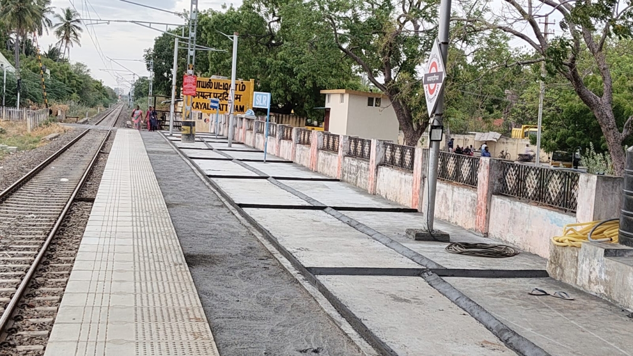தூத்துக்குடி மாவட்டத்தில் உள்ள காயல்பட்டினம் ரயில்வே ஸ்டேஷனில் நடைமேடை உயர்த்தும் பணிகள் சிறப்பாக நடைபெற்று வருகின்றன. பயணிகள் ஏறி இறங்கும் போது சந்திக்கும் சிரமங்களை நீக்குவதற்காக மேற்கொள்ளப்பட்டுள்ள இந்த மேம்படுத்தும் திட்டம் தற்போது இறுதிக்கட்டத்தை நோக்கி நகர்கிறது. அதிகாரிகள் தெரிவித்ததாவது, கூடிய விரைவில் இப்பணிகள் முழுமையாக நிறைவு பெறும் என்றும் அதன் பிறகு பயணிகள் இன்னும் வசதியாகவும் பாதுகாப்பாகவும் ரயிலில் ஏறி இறங்க முடியும் என்றும் கூறினர்.